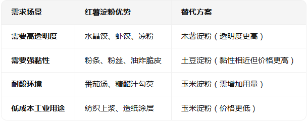 五、不同淀粉的替代場景對比
